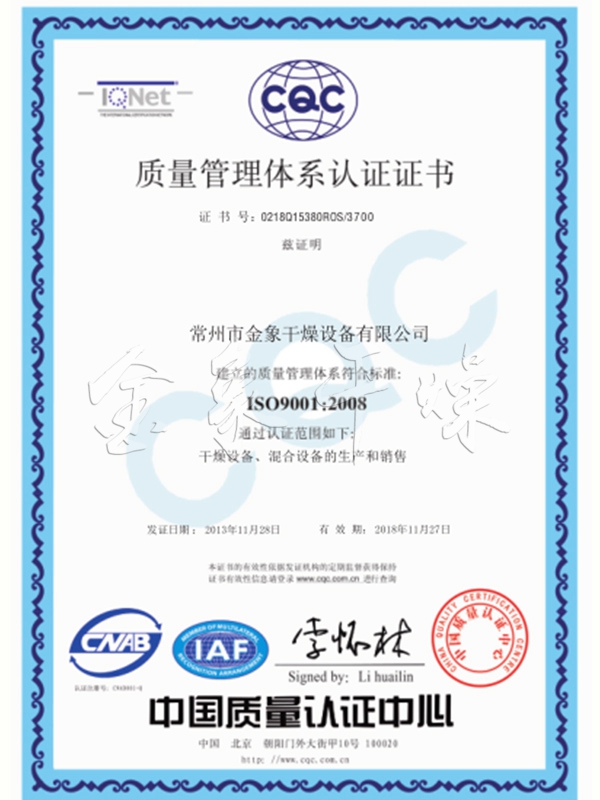 • ISO9001質量管理體系認證證書