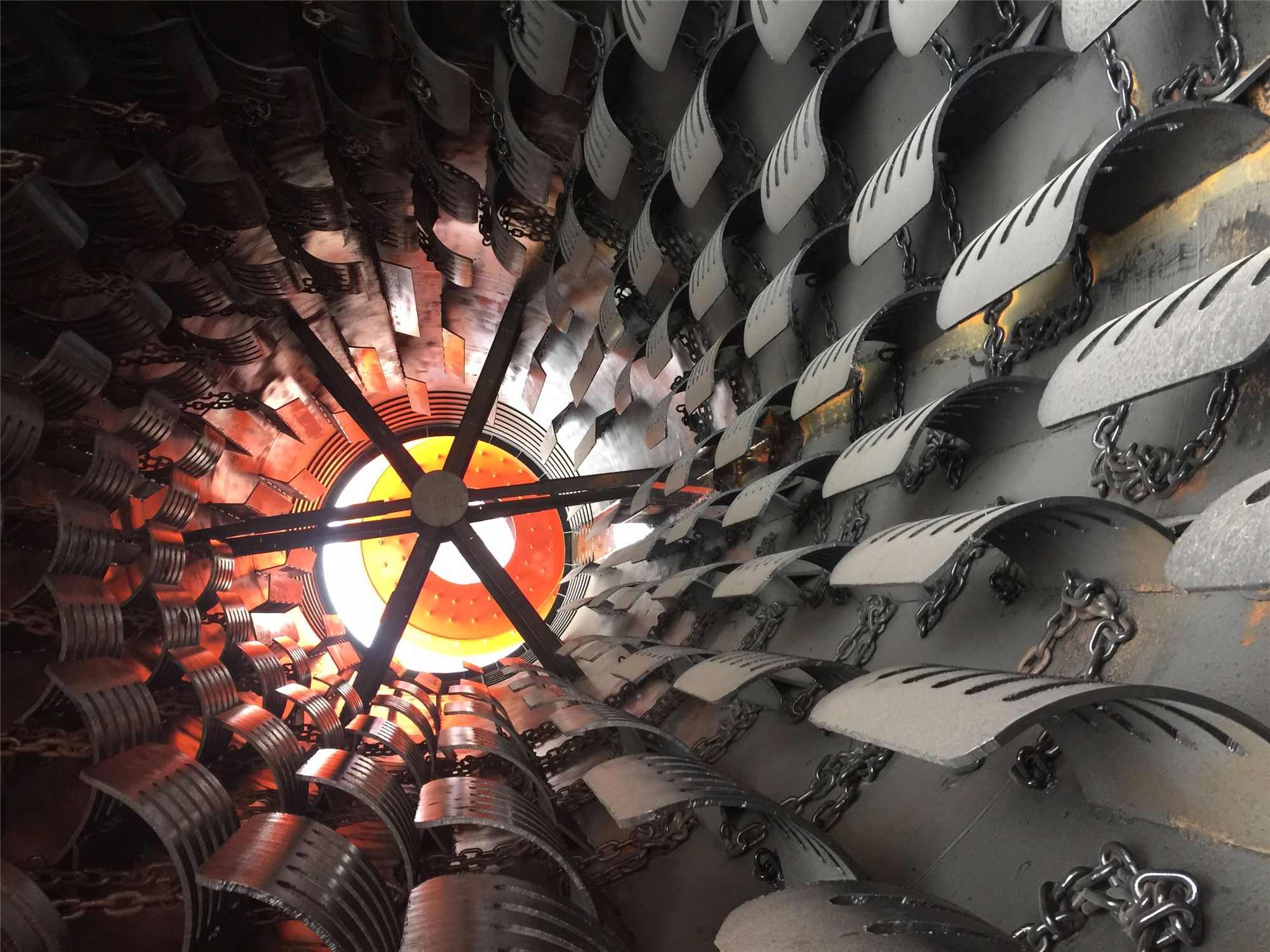 濕物料從干燥機一端投入后,在內筒均布的抄板器翻動下,物料在干燥器內均勻分布與分散,且與并流( 逆流 )的熱空氣充分接觸 ,加快了干燥傳流、傳質推動力。在干燥過程中,物料在帶有傾斜的抄板和熱氣流作用下,可調控地運動至干燥機另一端星形卸料閥排出成品。