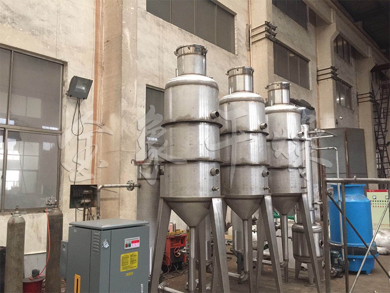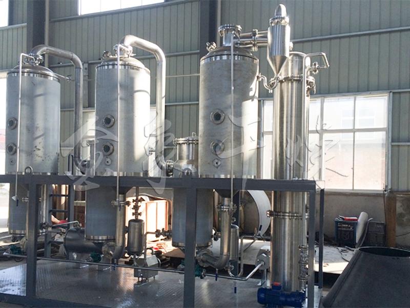 各效加熱蒸發器、各效分離器、冷凝器、熱壓泵、殺菌器、保溫管、真空系統、各效料液輸送泵、冷凝排水泵、操作平臺、電器儀表控制柜及閥門、管路等系統組成。